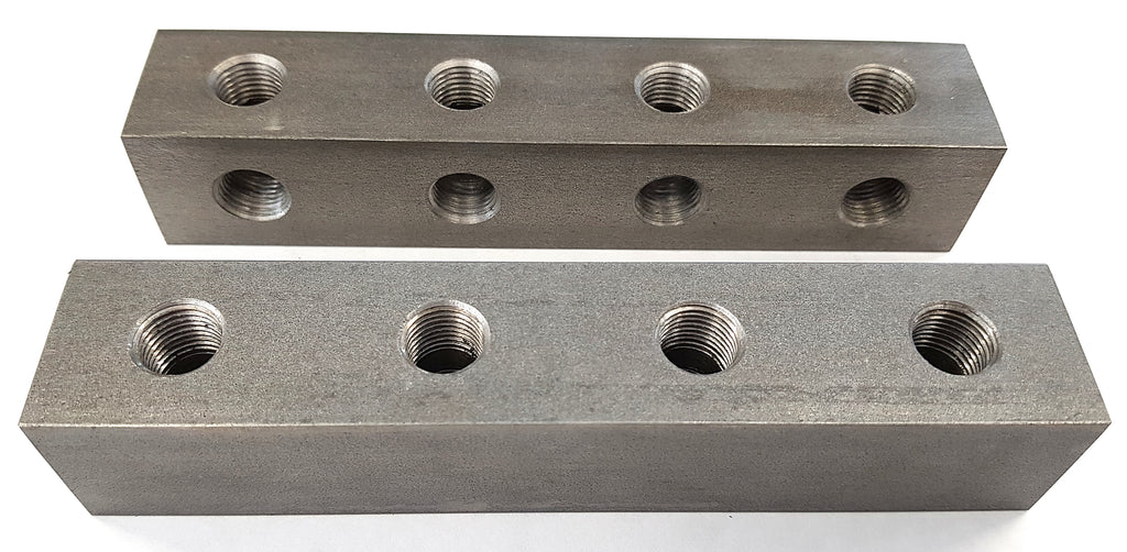 Grease nipple block 4-hole, straight, G1/4, stainless steel 304, 30mm + mounting hole